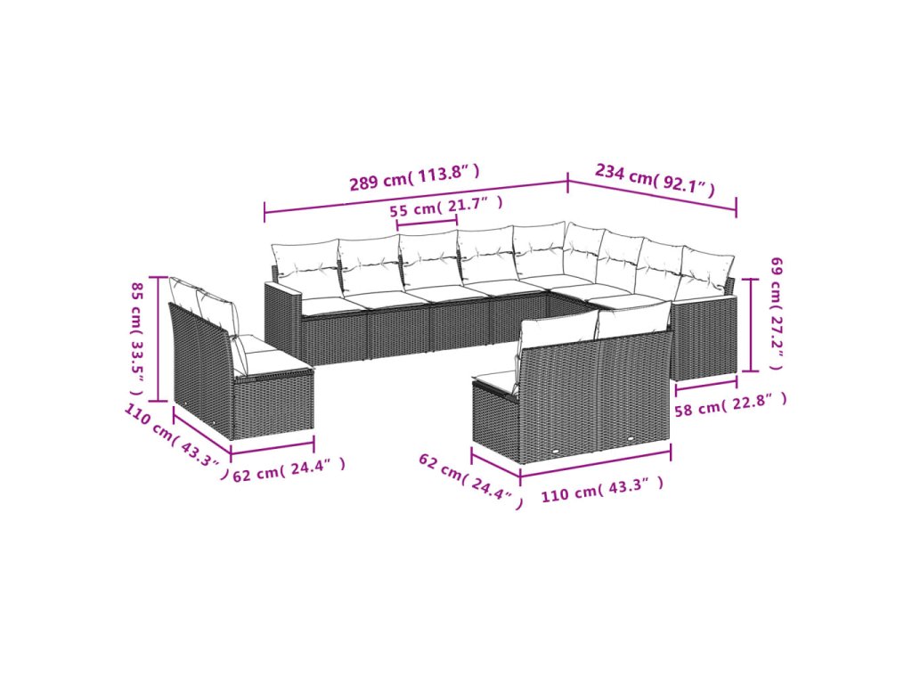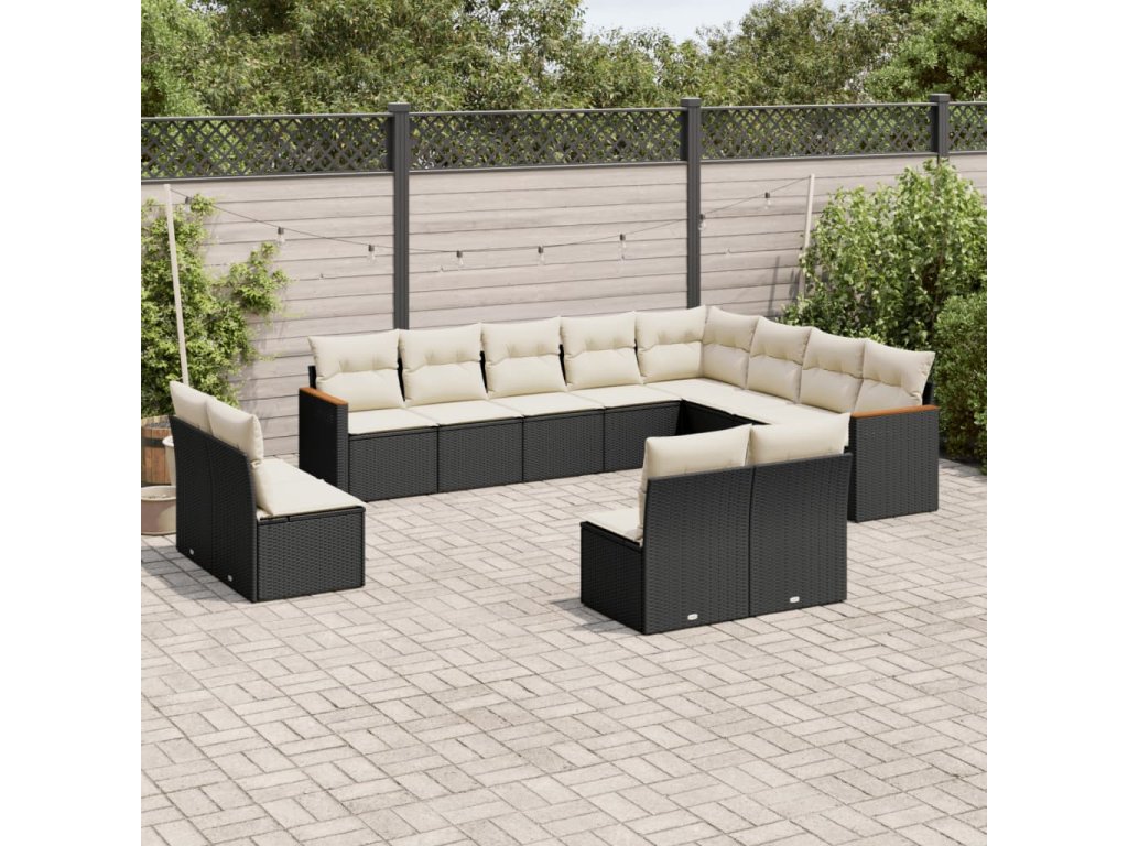 12dílná zahradní sedací souprava s poduškami černá polyratan 3226469