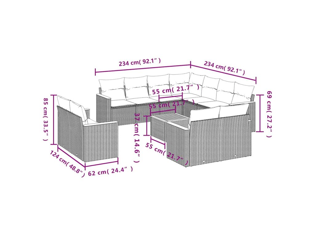 Tato zahradní sedací souprava je dokonalým doplňkem vaší zahrady, terasy nebo dvorku a poskytne vám pohodlné a příjemné místo, kde si můžete povídat s rodinou a přáteli nebo jen tak odpočívat a užívat si pobyt venku.