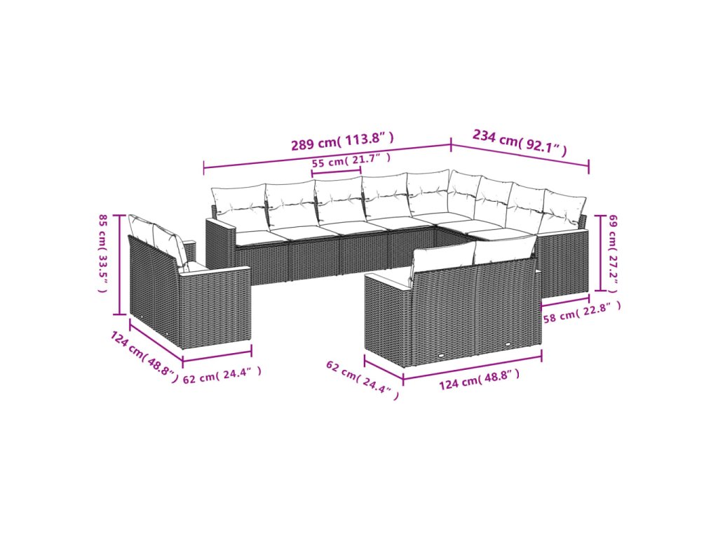 12dílná zahradní sedací souprava s poduškami černá polyratan 3226511