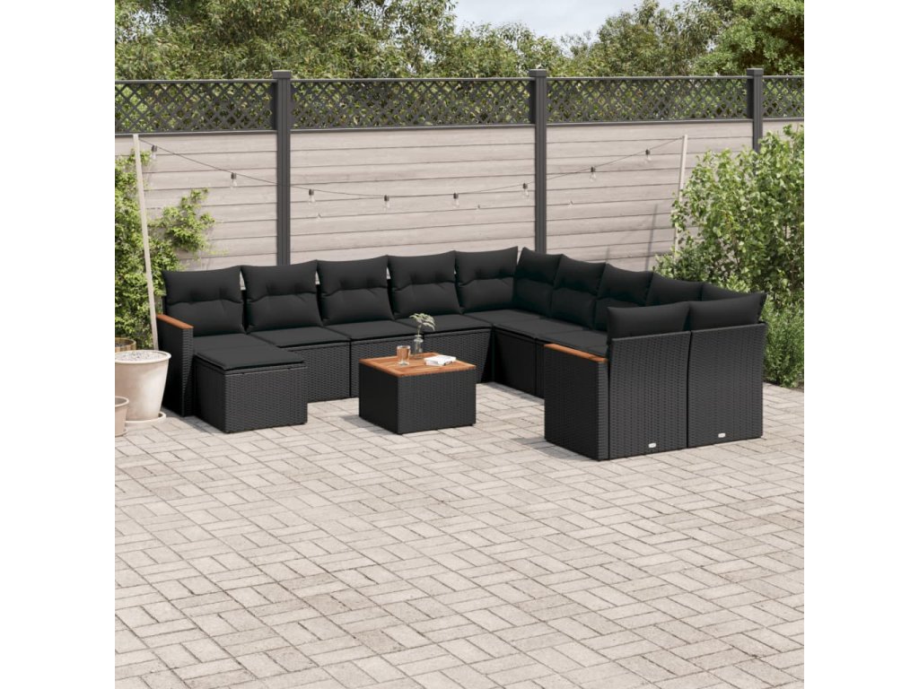 12dílná zahradní sedací souprava s poduškami černá polyratan 3226573