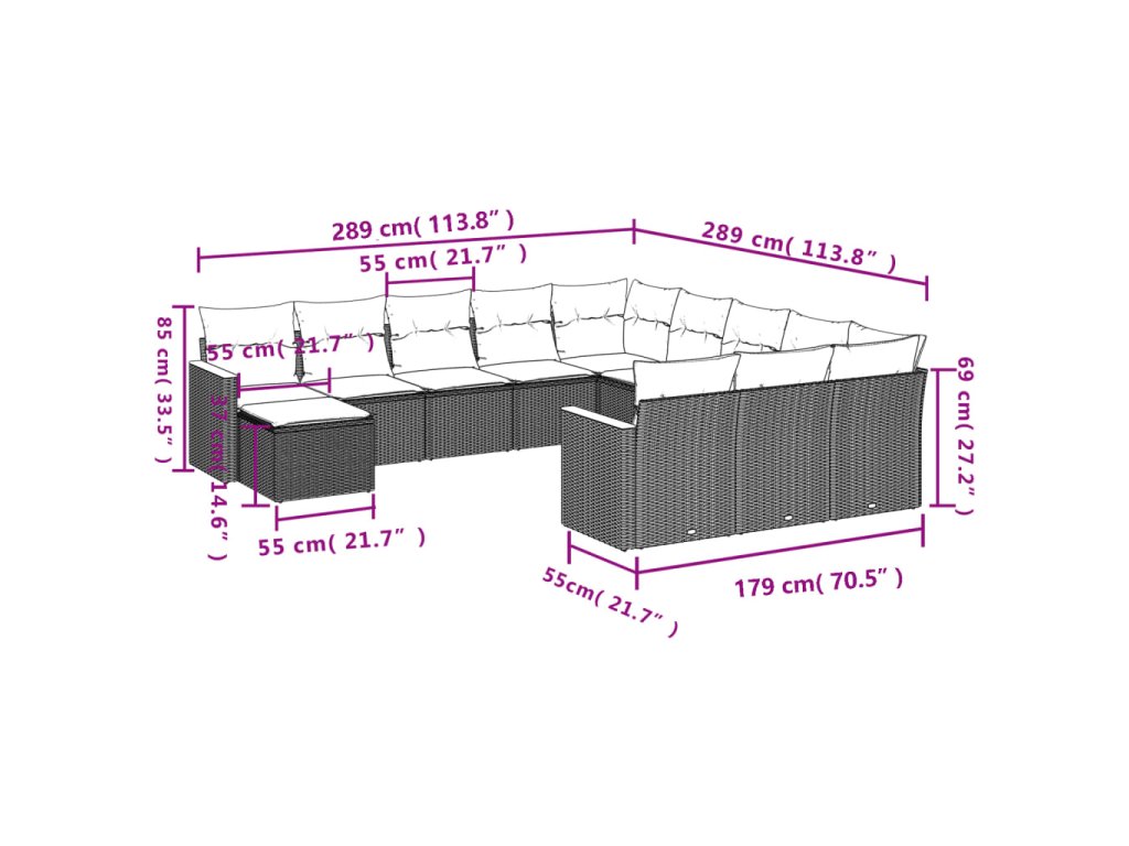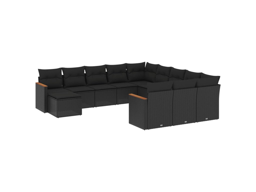 12dílná zahradní sedací souprava s poduškami černá polyratan 3226580