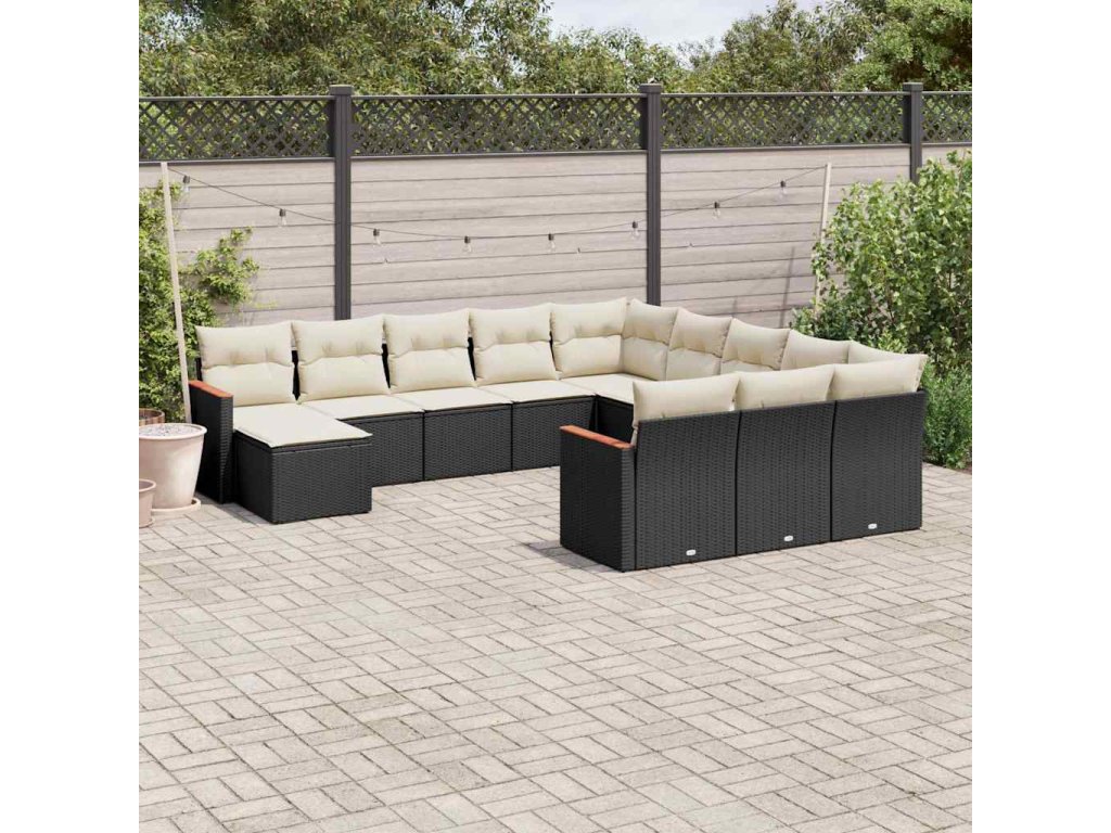 12dílná zahradní sedací souprava s poduškami černá polyratan 3226581