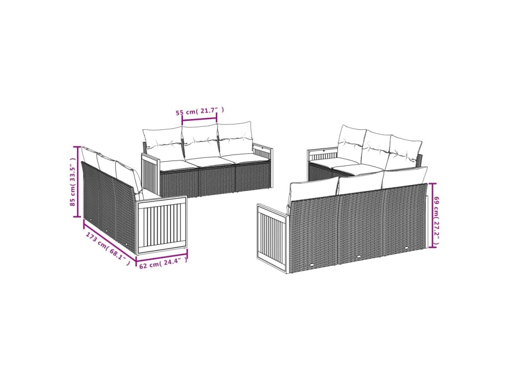 Tato zahradní sedací souprava je dokonalým doplňkem vaší zahrady, terasy nebo dvorku a poskytne vám pohodlné a příjemné místo, kde si můžete povídat s rodinou a přáteli nebo jen tak odpočívat a užívat si pobyt venku.