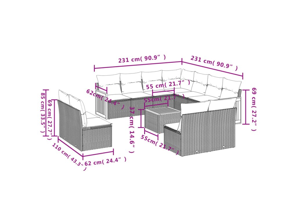 Tato zahradní sedací souprava je dokonalým doplňkem vaší zahrady, terasy nebo dvorku a poskytne vám pohodlné a příjemné místo, kde si můžete povídat s rodinou a přáteli nebo jen tak odpočívat a užívat si pobyt venku.