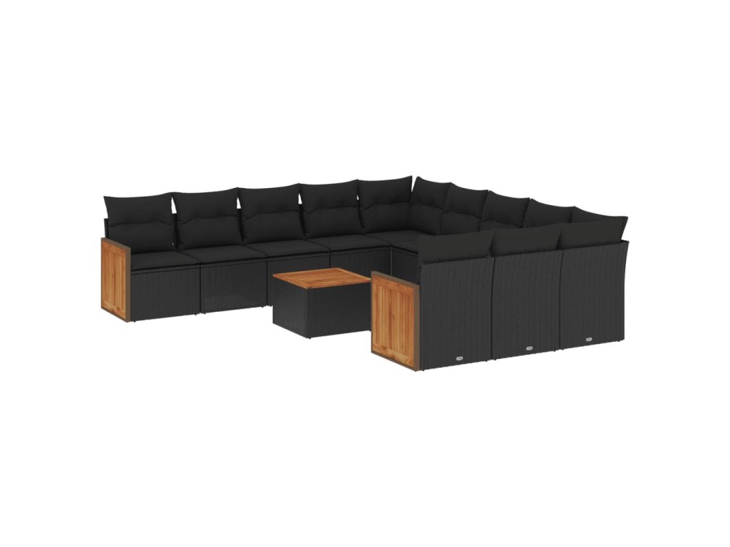12dílná zahradní sedací souprava s poduškami černá polyratan 3228113