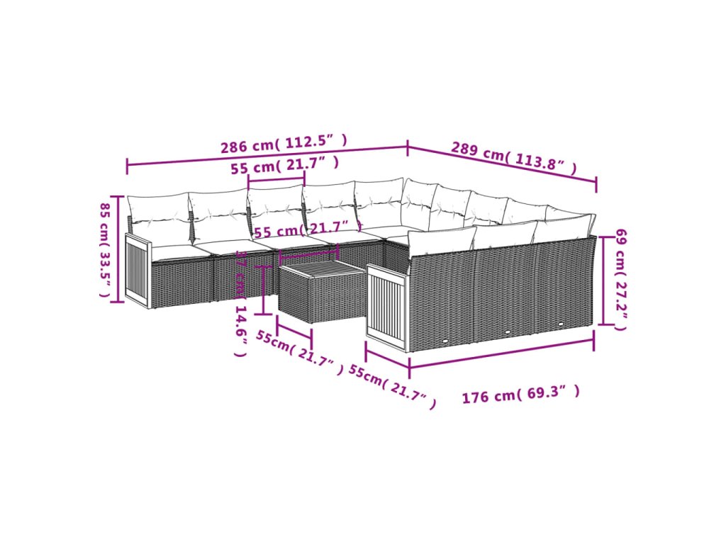 12dílná zahradní sedací souprava s poduškami černá polyratan 3228114