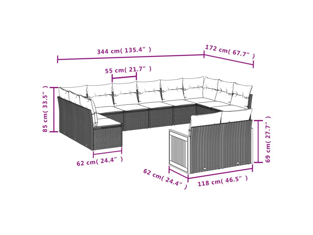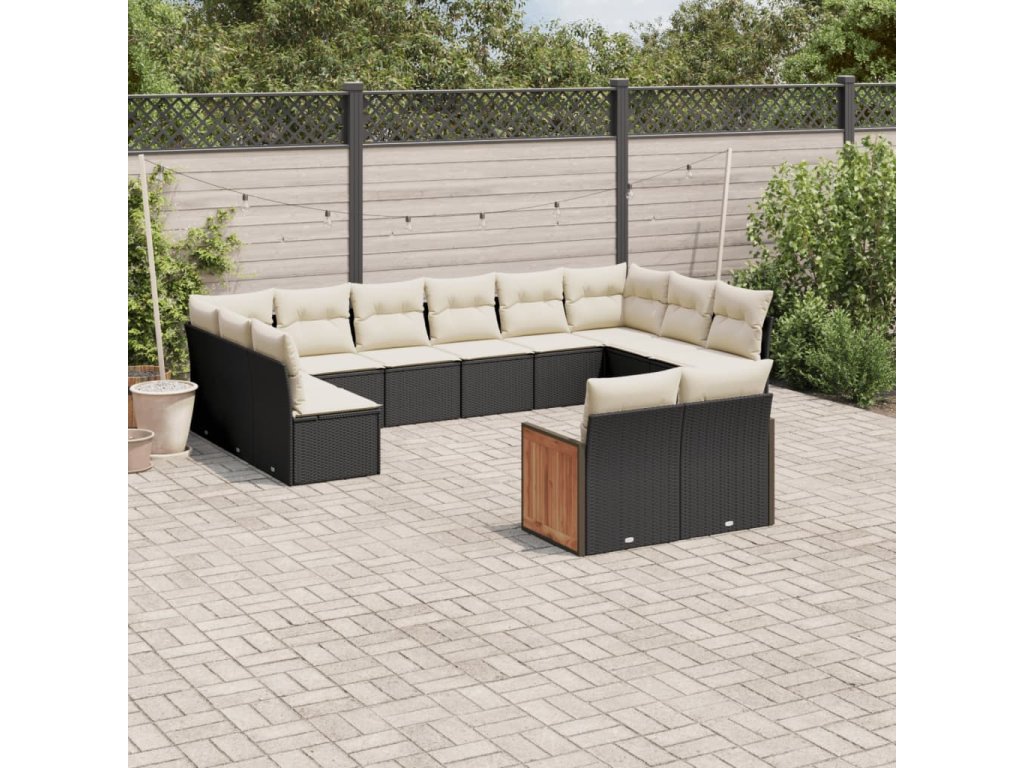 12dílná zahradní sedací souprava s poduškami černá polyratan 3228121