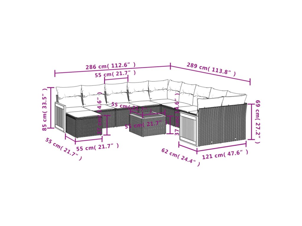12dílná zahradní sedací souprava s poduškami černá polyratan 3228254