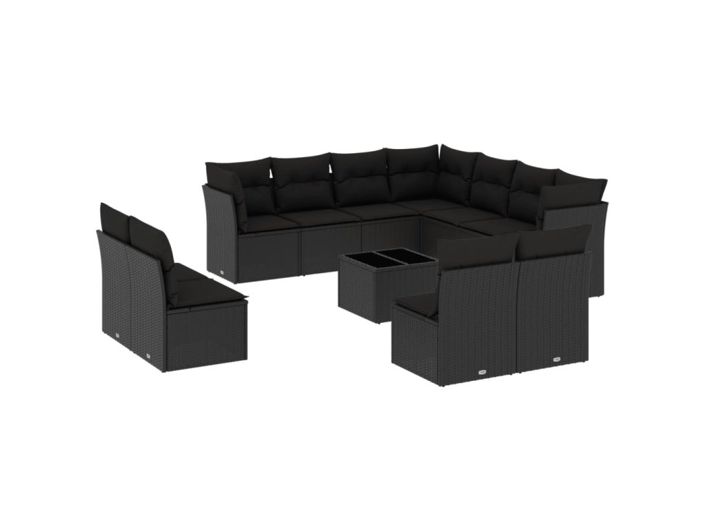 12dílná zahradní sedací souprava s poduškami černá polyratan 3249664