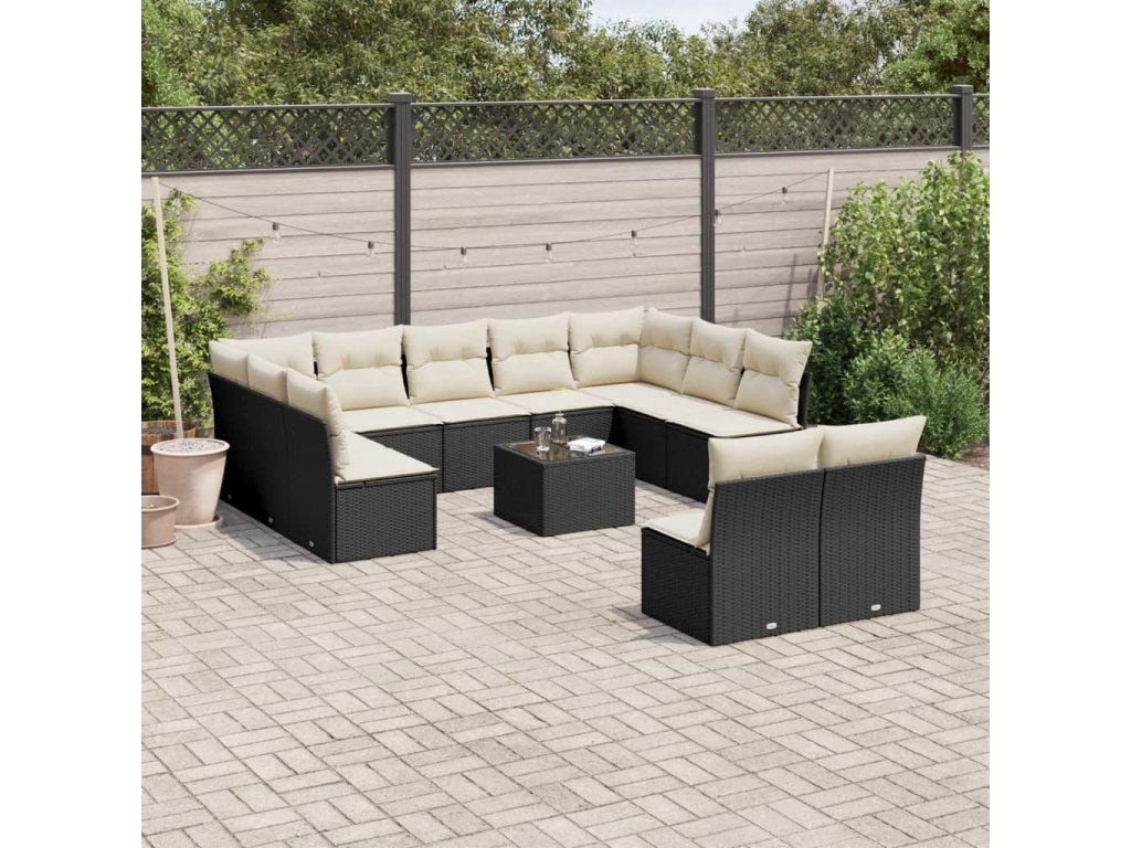 12dílná zahradní sedací souprava s poduškami černá polyratan 3250195