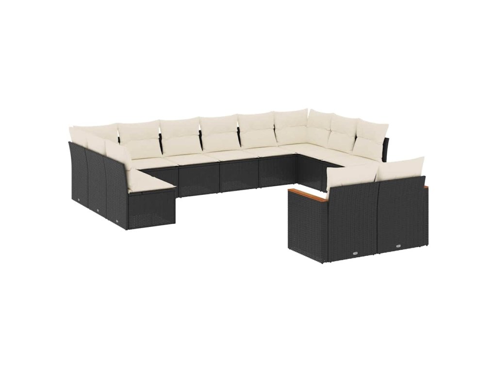 12dílná zahradní sedací souprava s poduškami černá polyratan 3258843