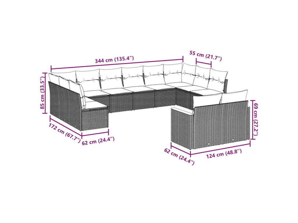 Tato zahradní sedací souprava je dokonalým doplňkem vaší zahrady, terasy nebo dvorku a poskytne vám pohodlné a příjemné místo, kde si můžete povídat s rodinou a přáteli nebo jen tak odpočívat a užívat si pobyt venku.