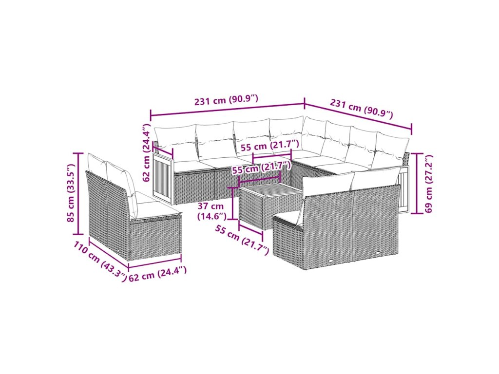 Tato zahradní sedací souprava je dokonalým doplňkem vaší zahrady, terasy nebo dvorku a poskytne vám pohodlné a příjemné místo, kde si můžete povídat s rodinou a přáteli nebo jen tak odpočívat a užívat si pobyt venku.