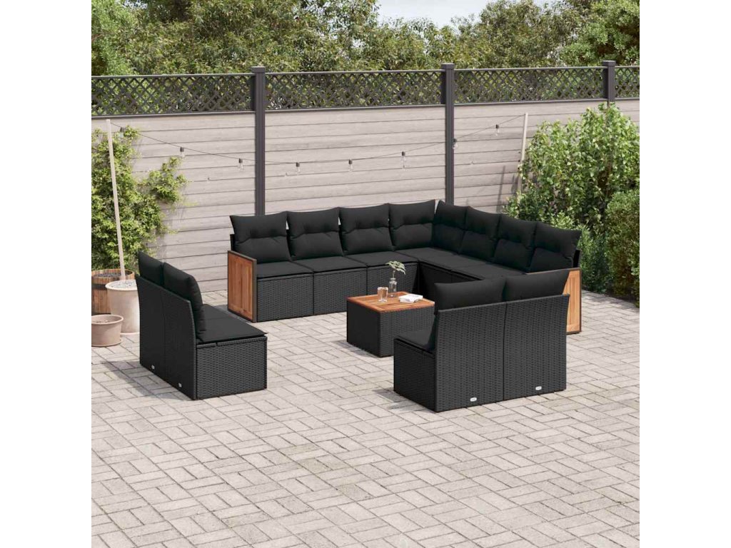 12dílná zahradní sedací souprava s poduškami černá polyratan 3260172