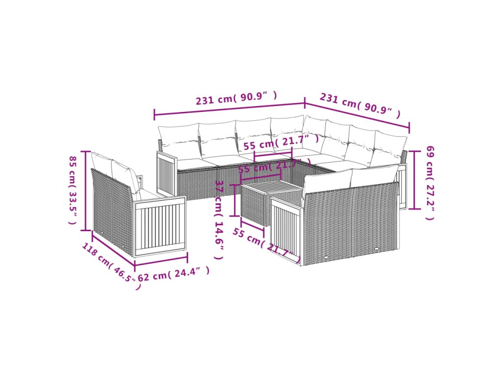 Tato zahradní sedací souprava je dokonalým doplňkem vaší zahrady, terasy nebo dvorku a poskytne vám pohodlné a příjemné místo, kde si můžete povídat s rodinou a přáteli nebo jen tak odpočívat a užívat si pobyt venku.
