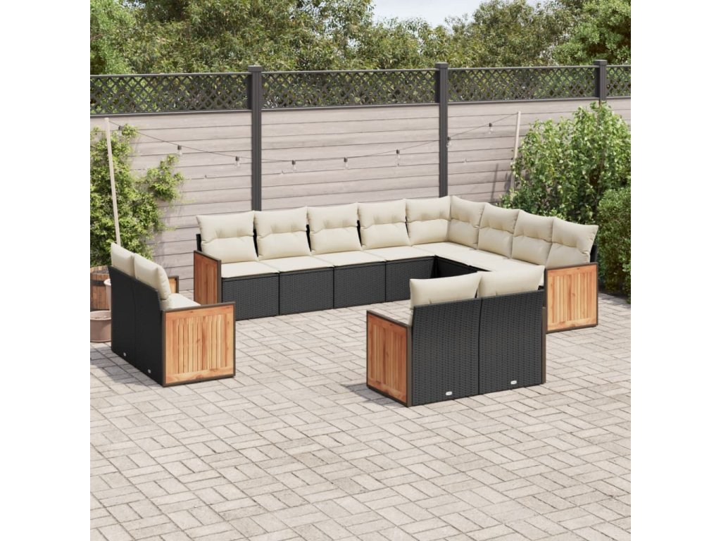 12dílná zahradní sedací souprava s poduškami černá polyratan 3260593