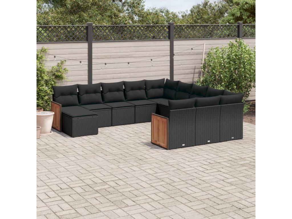 12dílná zahradní sedací souprava s poduškami černá polyratan 3260662
