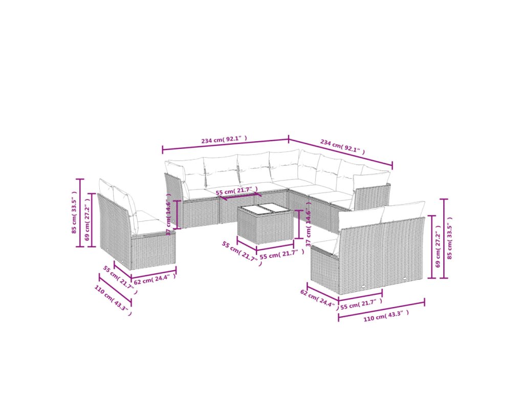 Tato zahradní sedací souprava je dokonalým doplňkem vaší zahrady, terasy nebo dvorku a poskytne vám pohodlné a příjemné místo, kde si můžete povídat s rodinou a přáteli nebo jen tak odpočívat a užívat si pobyt venku.