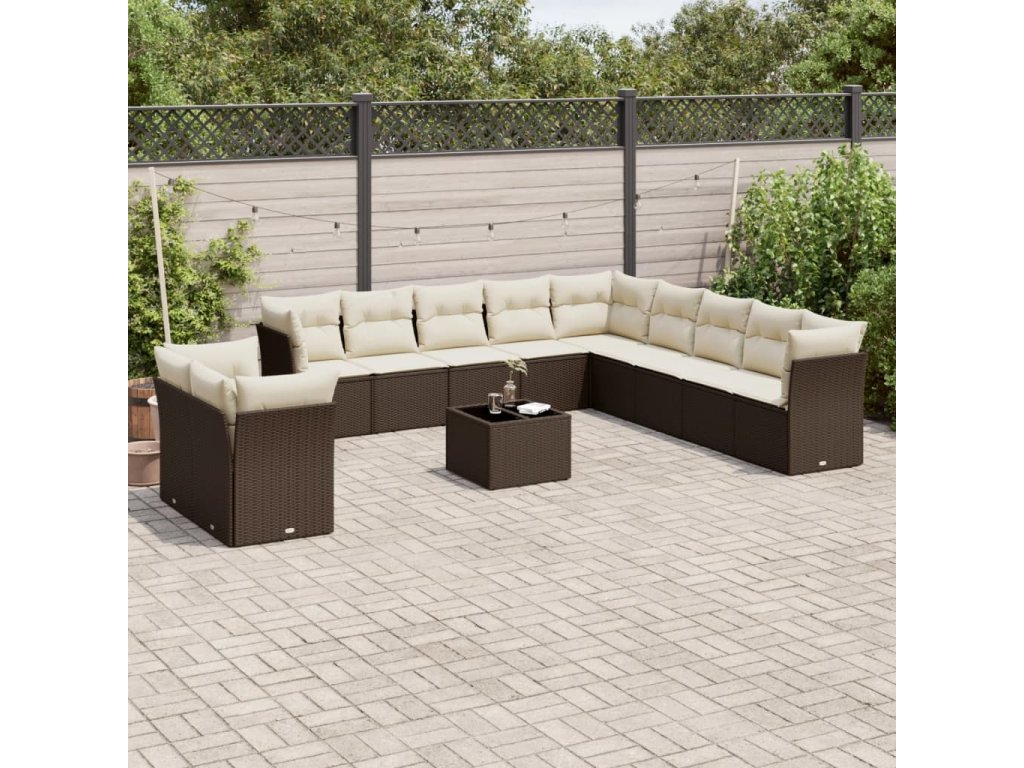 12dílná zahradní sedací souprava s poduškami hnědá polyratan 3217893