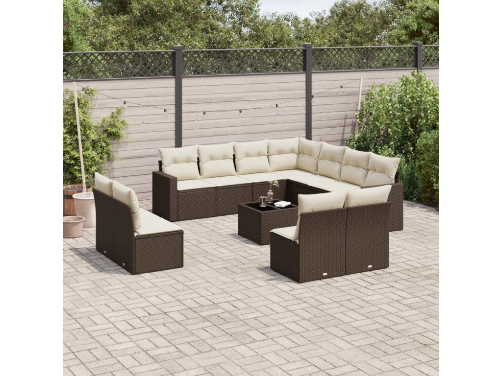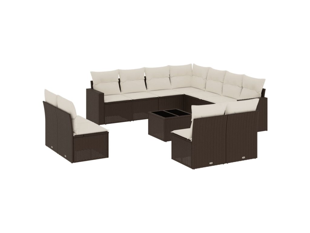 12dílná zahradní sedací souprava s poduškami hnědá polyratan 3219133