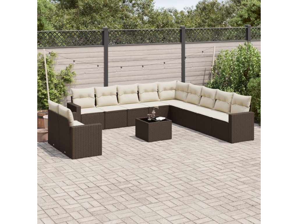 12dílná zahradní sedací souprava s poduškami hnědá polyratan 3219193