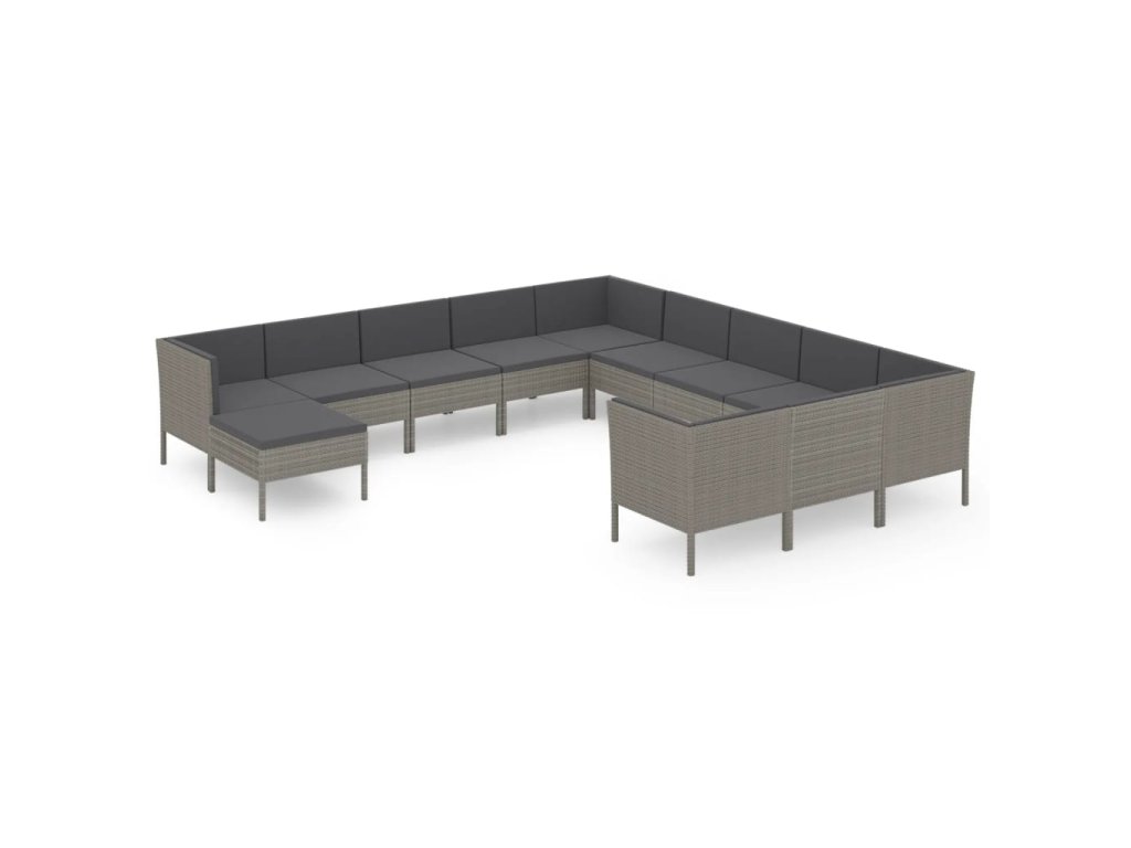 12dílná zahradní sedací souprava s poduškami polyratan šedá 3094526