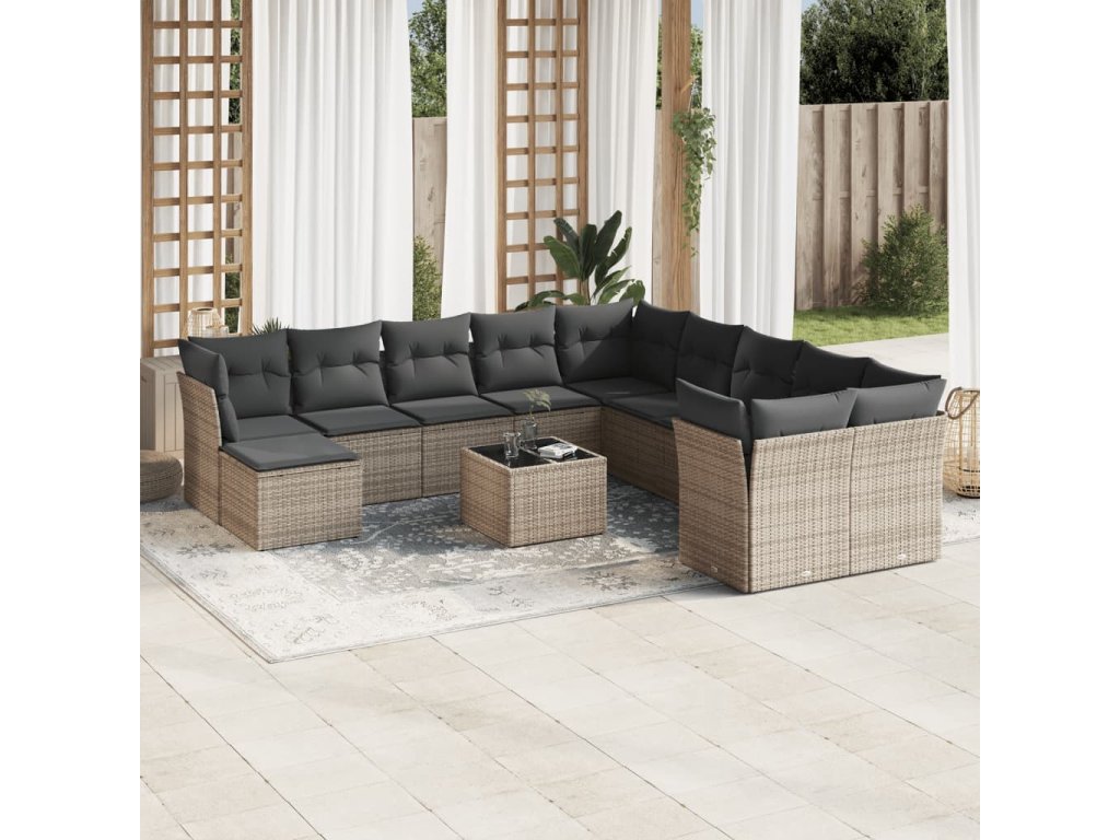 12dílná zahradní sedací souprava s poduškami šedá polyratan 3218620