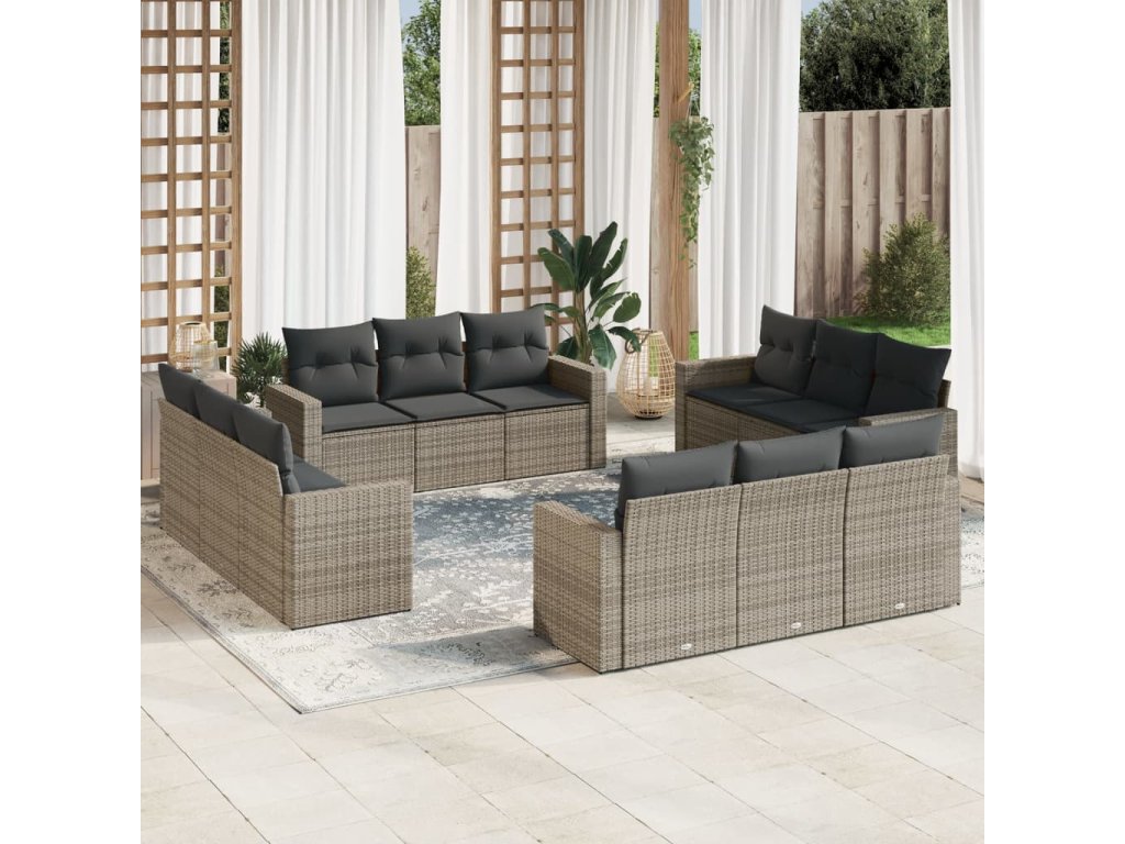12dílná zahradní sedací souprava s poduškami šedá polyratan 3218760