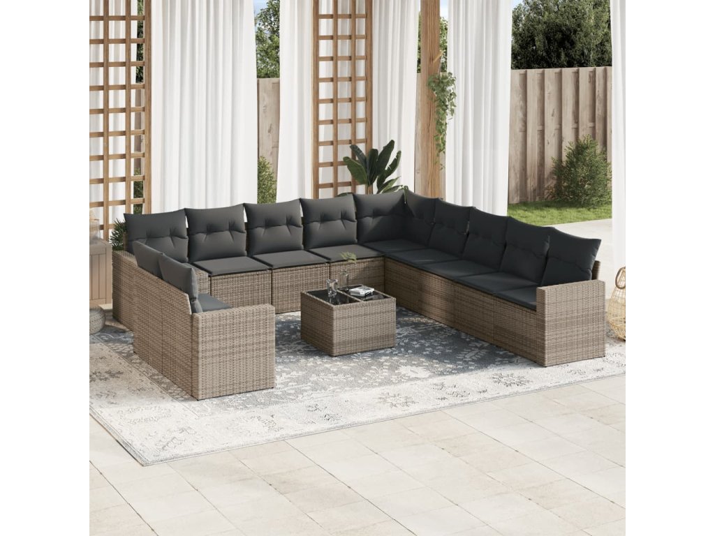 12dílná zahradní sedací souprava s poduškami šedá polyratan 3219190