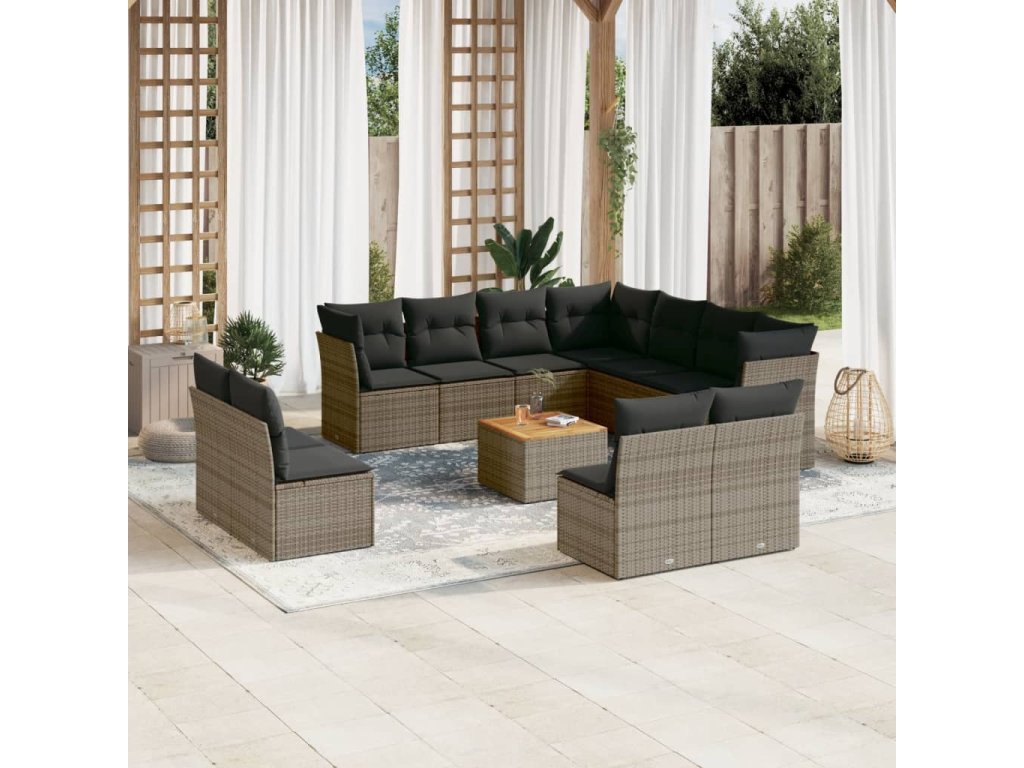 12dílná zahradní sedací souprava s poduškami šedá polyratan 3223708