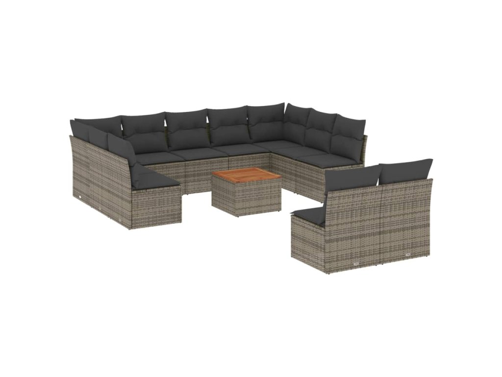 12dílná zahradní sedací souprava s poduškami šedá polyratan 3223890