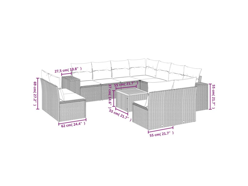 12dílná zahradní sedací souprava s poduškami šedá polyratan 3225507