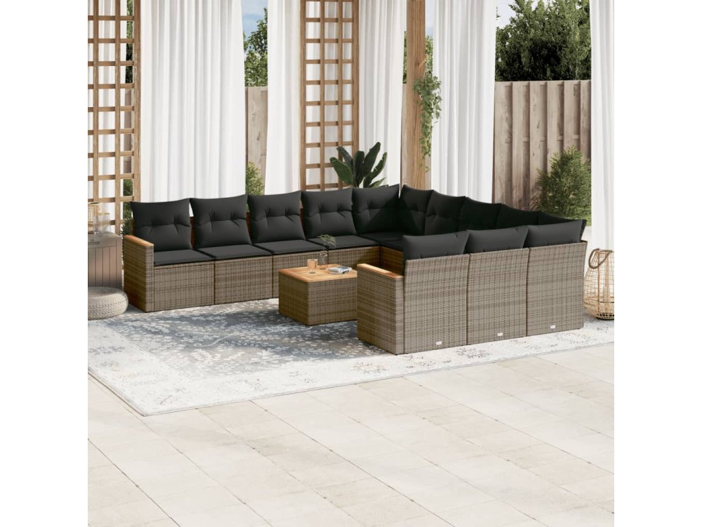 12dílná zahradní sedací souprava s poduškami šedá polyratan 3226438