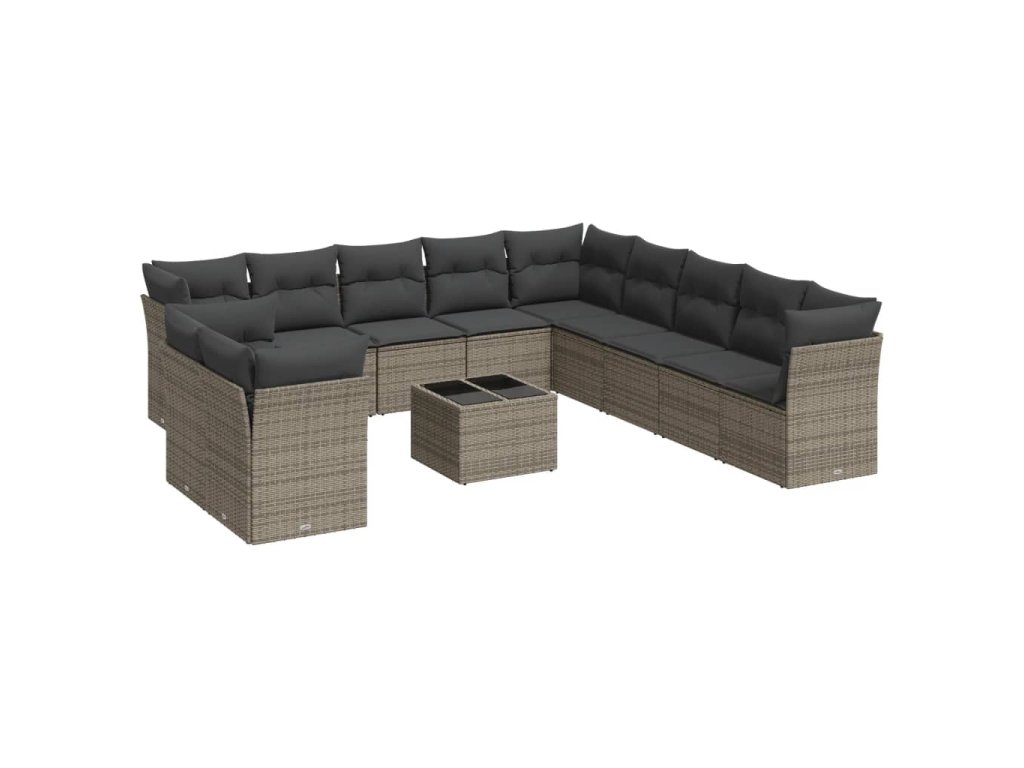 12dílná zahradní sedací souprava s poduškami šedá polyratan 3249729