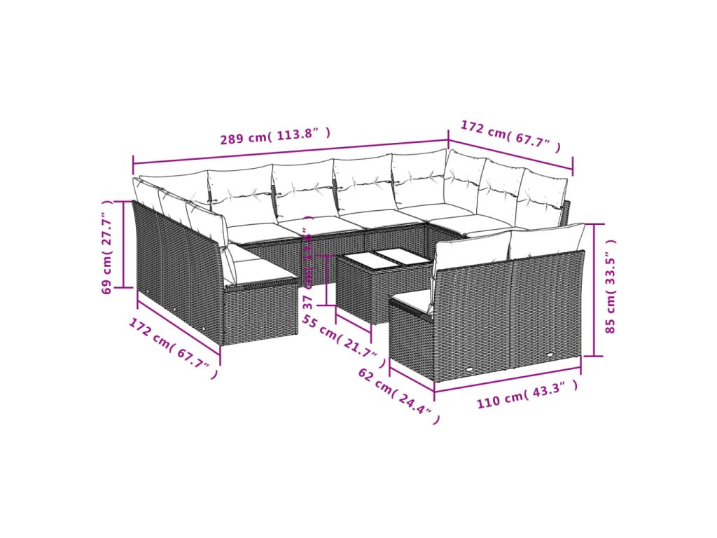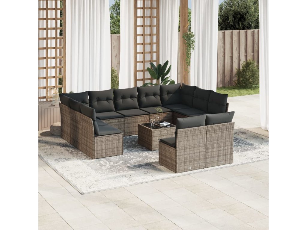 12dílná zahradní sedací souprava s poduškami šedá polyratan 3250199