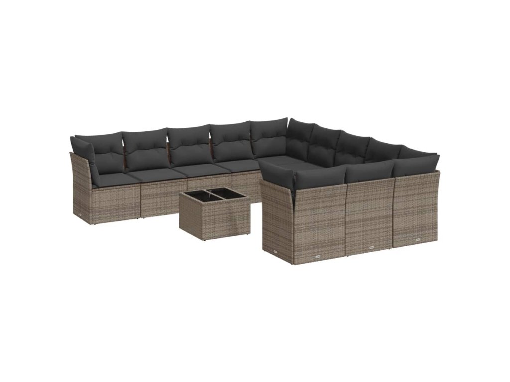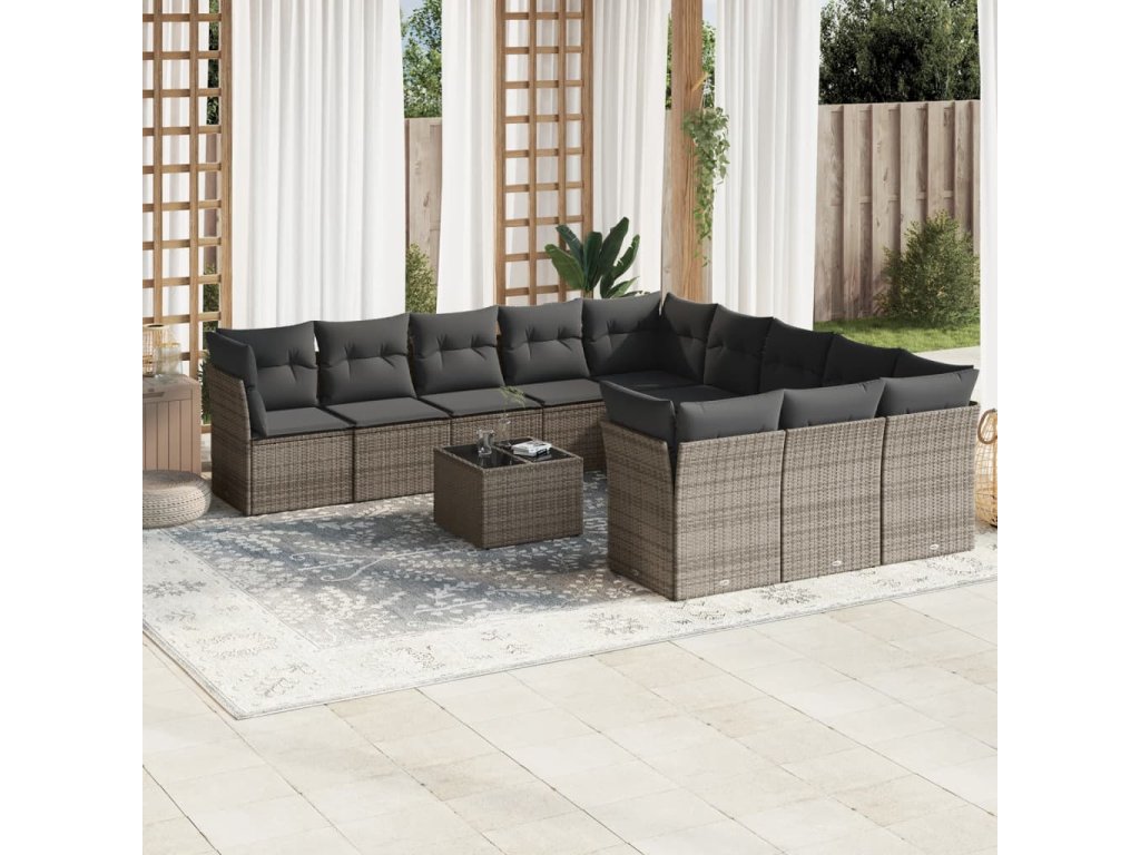 12dílná zahradní sedací souprava s poduškami šedá polyratan 3250259