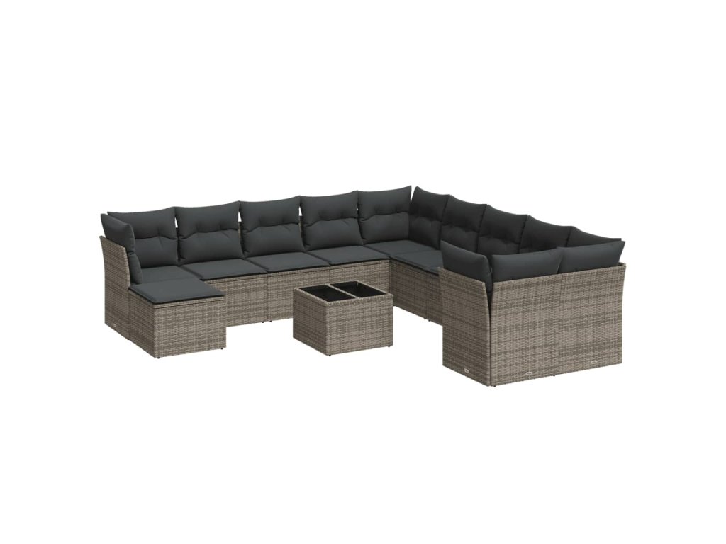 12dílná zahradní sedací souprava s poduškami šedá polyratan 3250459