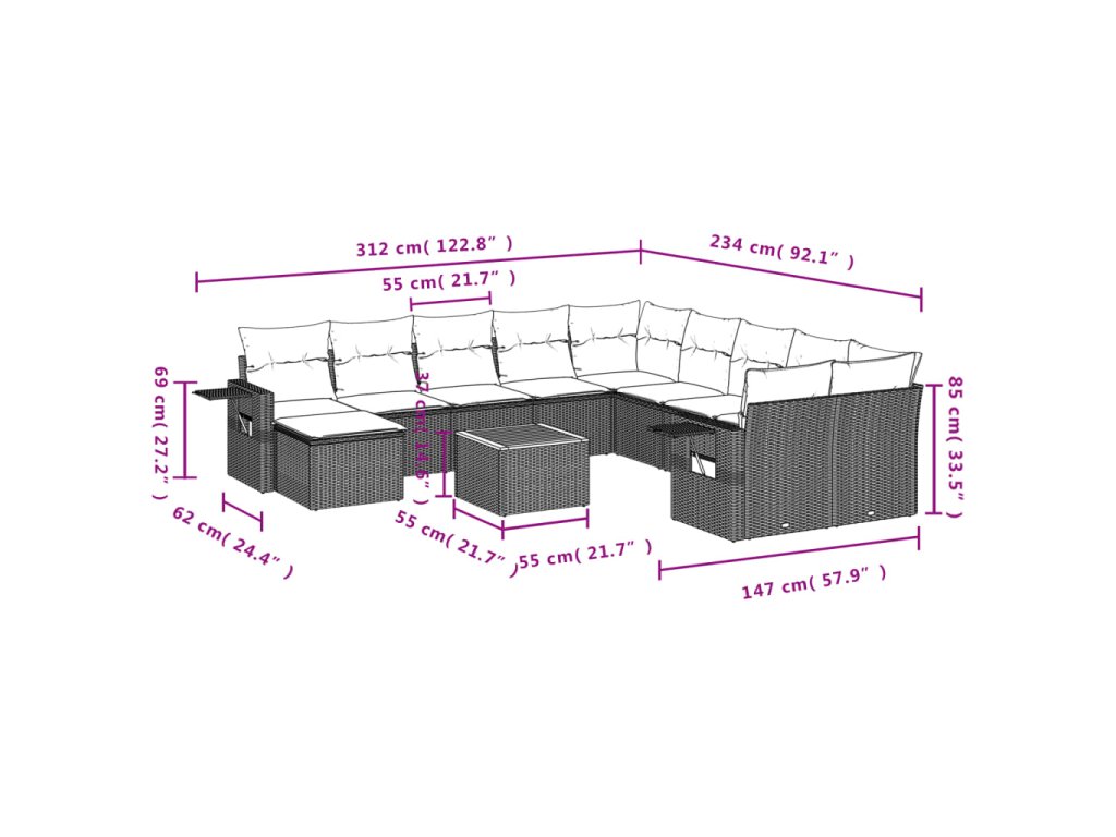 Tato zahradní sedací souprava je dokonalým doplňkem vaší zahrady, terasy nebo dvorku a poskytne vám pohodlné a příjemné místo, kde si můžete povídat s rodinou a přáteli nebo jen tak odpočívat a užívat si pobyt venku.