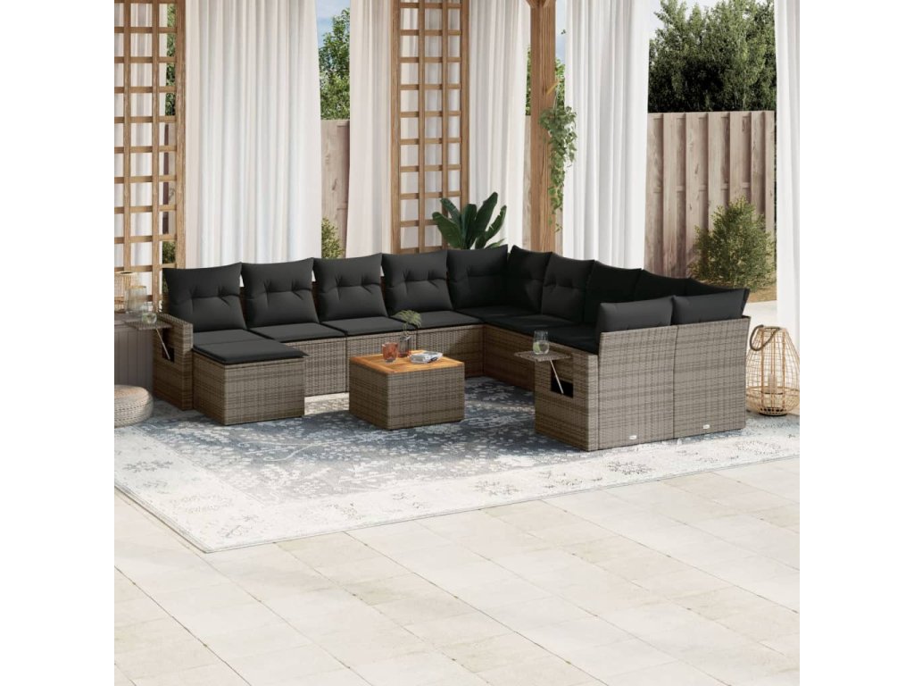 12dílná zahradní sedací souprava s poduškami šedá polyratan 3257194