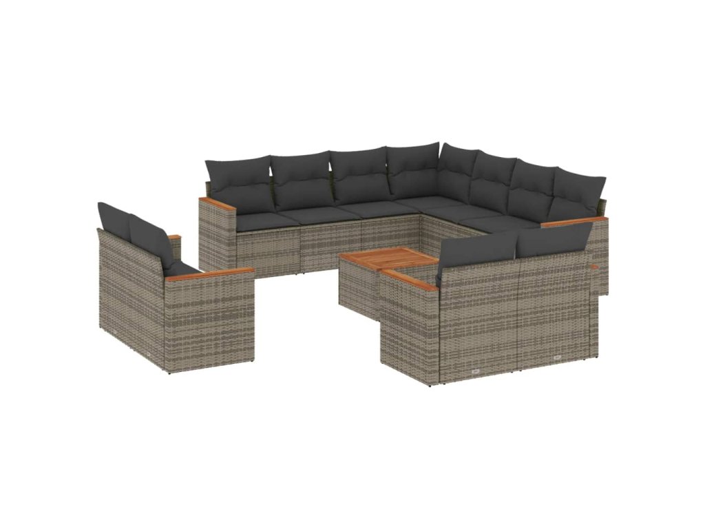 12dílná zahradní sedací souprava s poduškami šedá polyratan 3258910