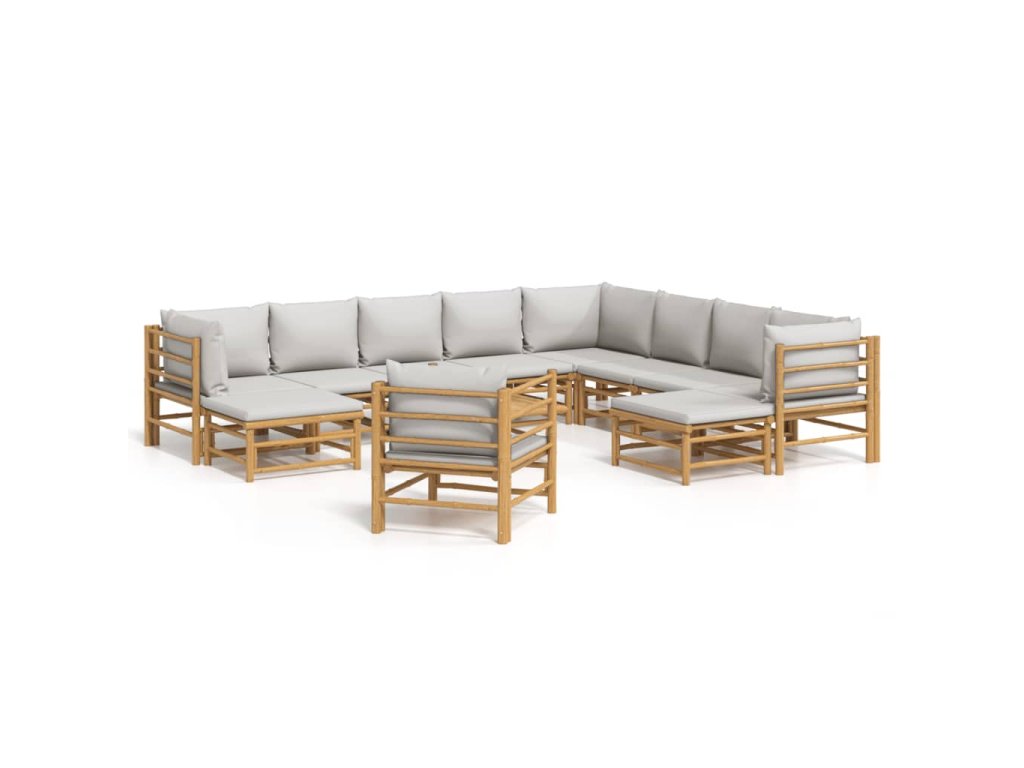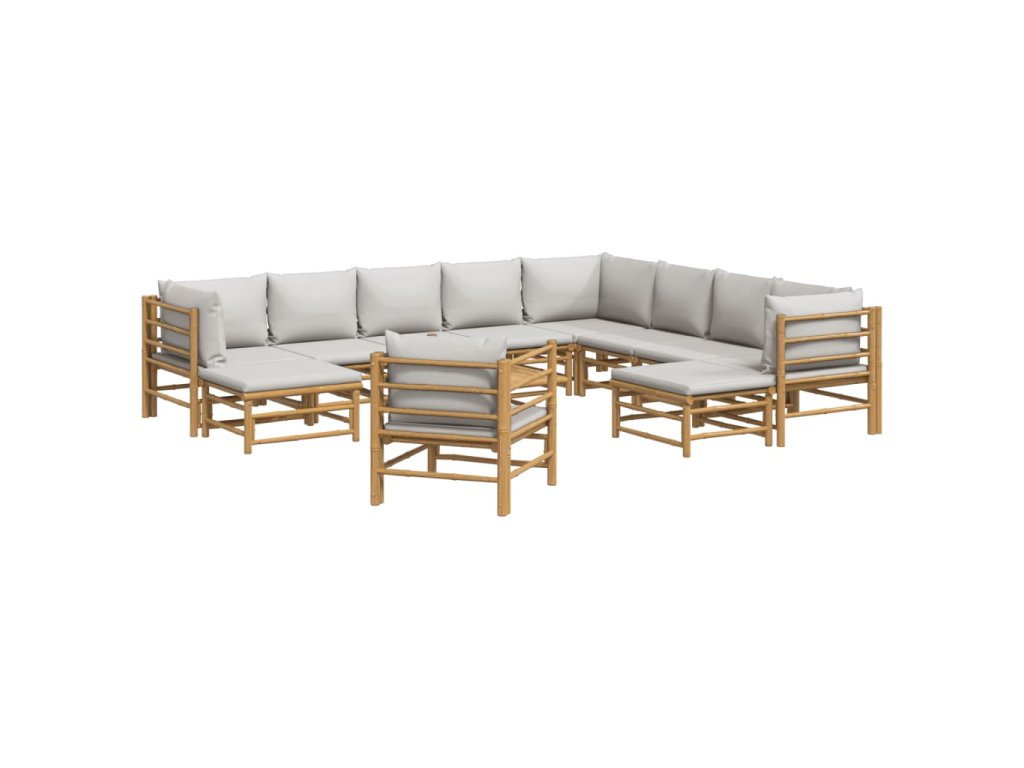 12dílná zahradní sedací souprava světle šedé podušky bambus 3155098