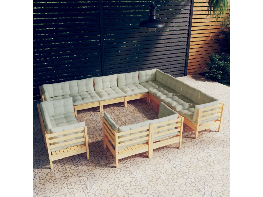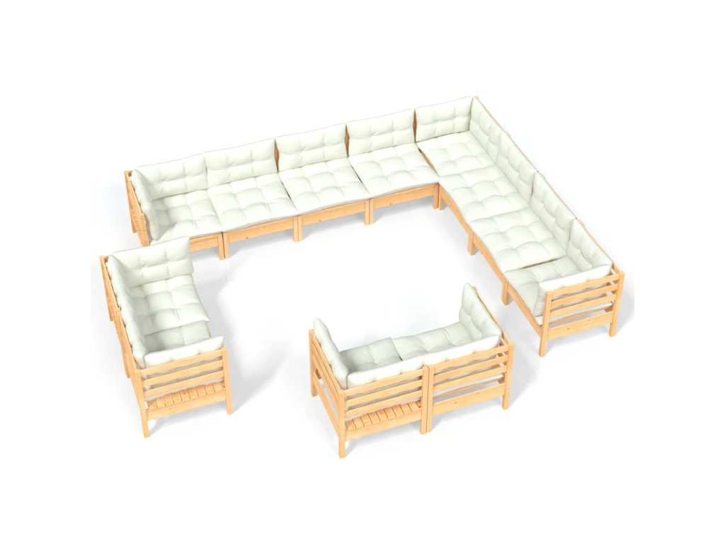 12dílná zahradní souprava krémové podušky masivní borovice 3096947