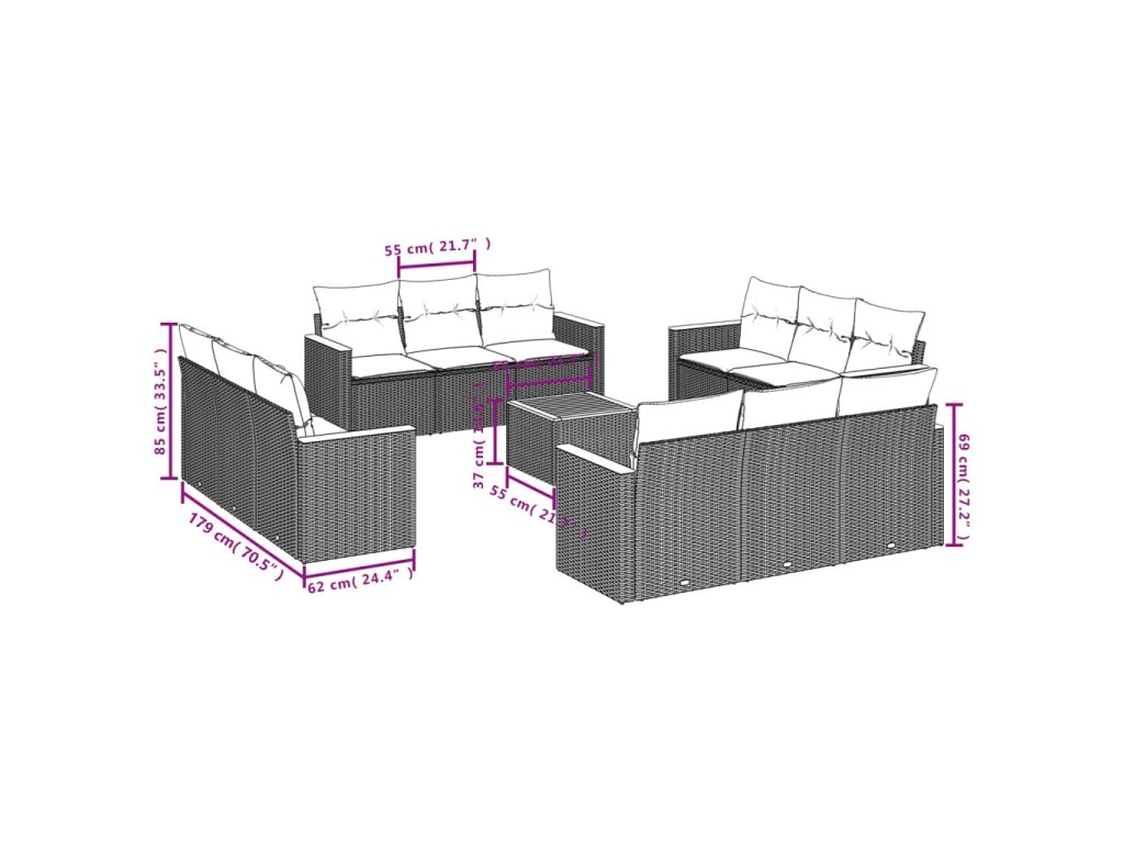 Tato zahradní sedací souprava je dokonalým doplňkem vaší zahrady, terasy nebo dvorku a poskytne vám pohodlné a příjemné místo, kde si můžete povídat s rodinou a přáteli nebo jen tak odpočívat a užívat si pobyt venku.