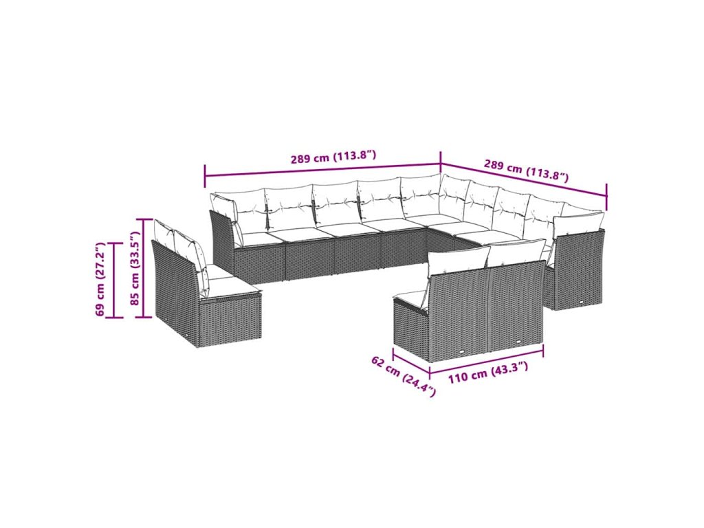 13dílná zahradní sedací souprava podušky světle šedá polyratan 3218492