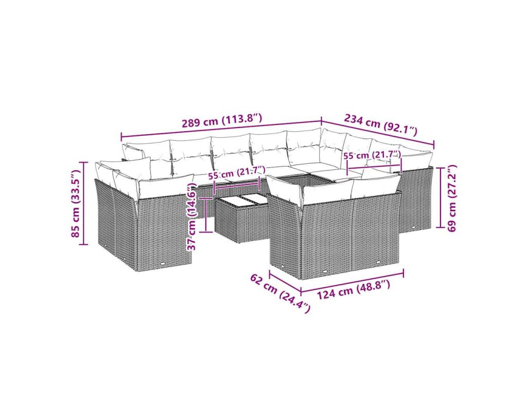 13dílná zahradní sedací souprava podušky světle šedá polyratan 3218542