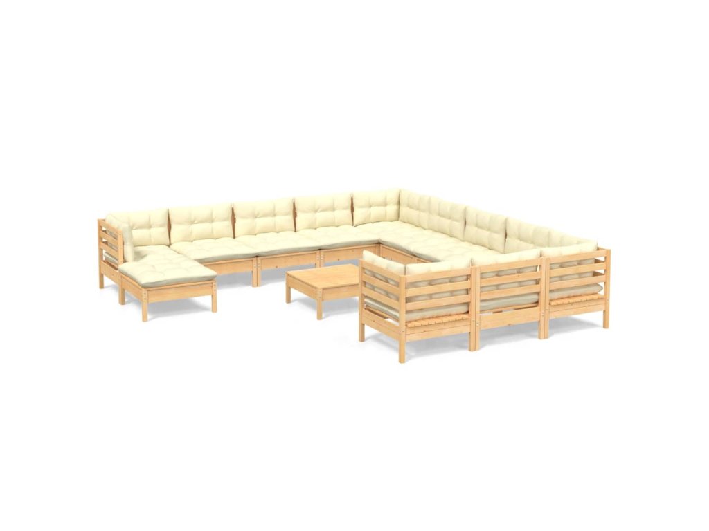 13dílná zahradní sedací souprava s krémovými poduškami borovice 3097073