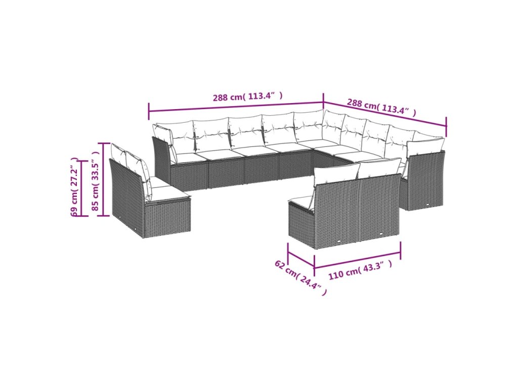 13dílná zahradní sedací souprava s poduškami béžová polyratan 3218489