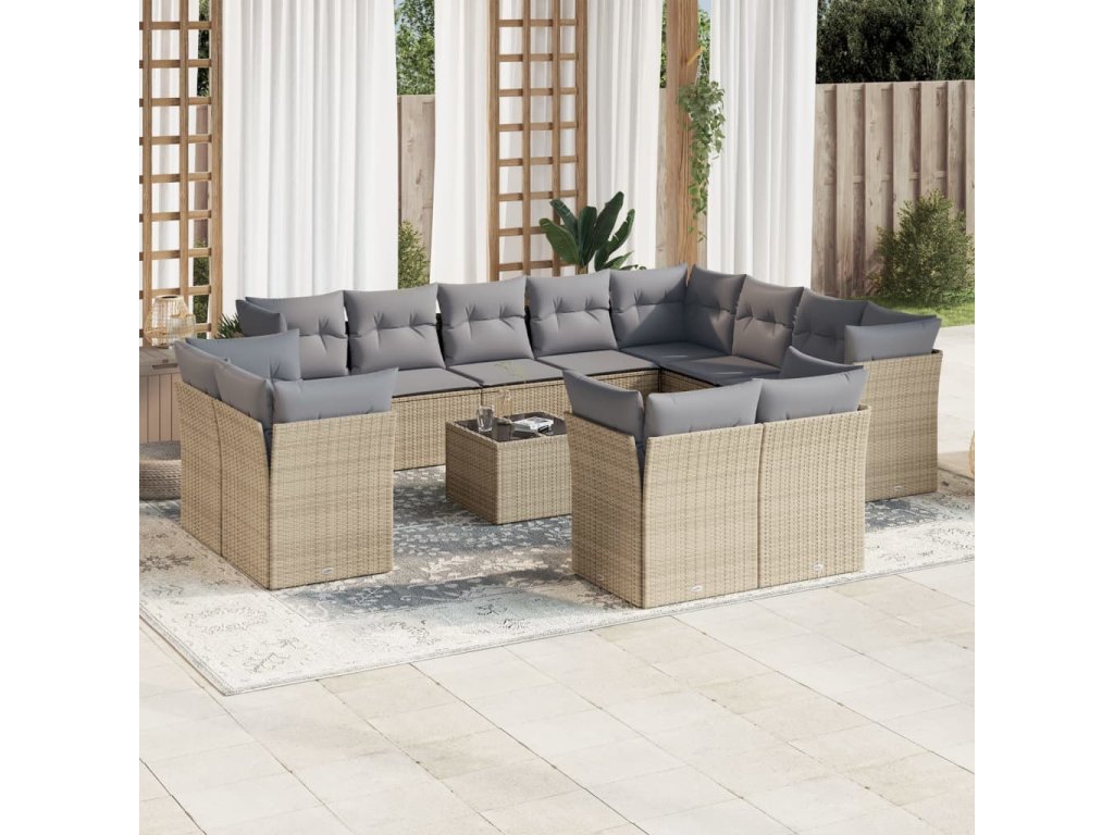 13dílná zahradní sedací souprava s poduškami béžová polyratan 3218539