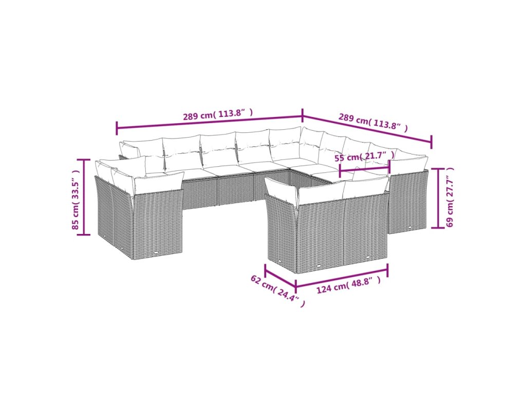 13dílná zahradní sedací souprava s poduškami béžová polyratan 3218549