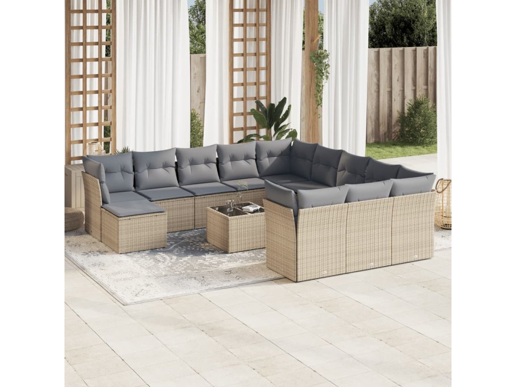 13dílná zahradní sedací souprava s poduškami béžová polyratan 3218639